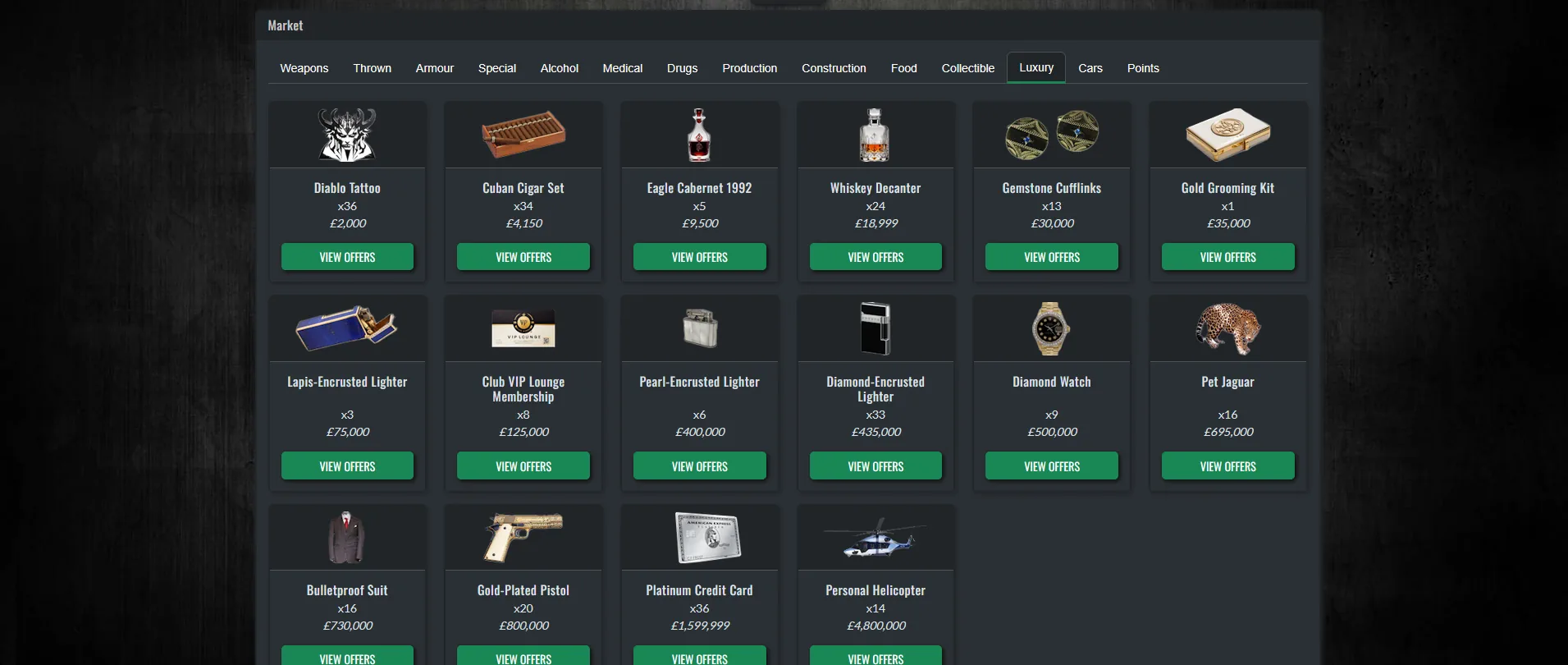 An entirely player-ran economy where a majority of items are produced by players and can be sold on the Item Market to others.