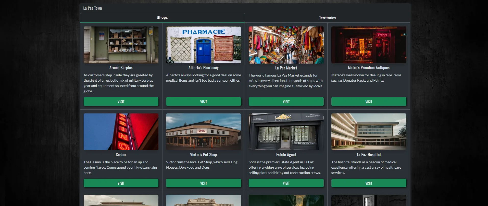 Recruit Sicarios from Julios Club in Town, equip them with a large variety of items before sending them on Expeditions to complete Sanctioned Hits, Gang Wars and Kidnappings among much more on your behalf around Bolivia.